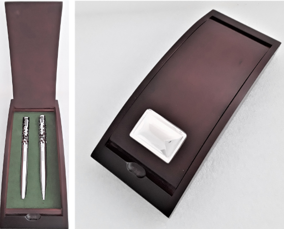 PRATA ESTOJO MADEIRA 2PEÇAS-CANETA , ESFEROGRÁFICA.