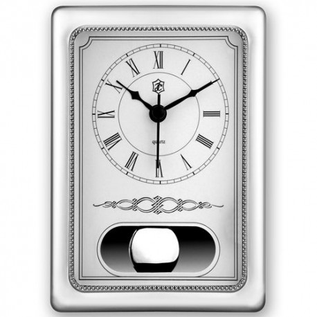 PRATA RELÓGIO DESPERTADOR RECTANGULAR C/PÊNDULO PICOTADO